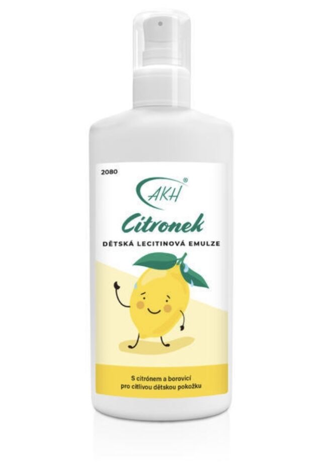 Lecithin-Emulsion mit Zitrone und Kiefer zur Pflege empfindlicher Kinderhaut.
